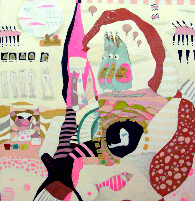 拾った木の使い古されたパネルに、何も考えずに描いた鉛筆の落書きから産まれました。